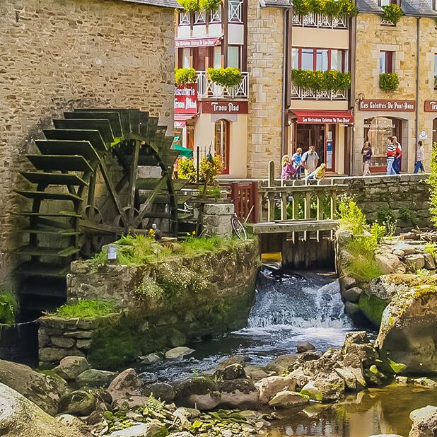 Pont-Aven avec son charmant petit port, ses belles maisons, sa vallée verdoyante jalonnée de roches, lavoirs et moulins, ses galeries et ateliers d’artistes régalera autant vos yeux que vos papilles !